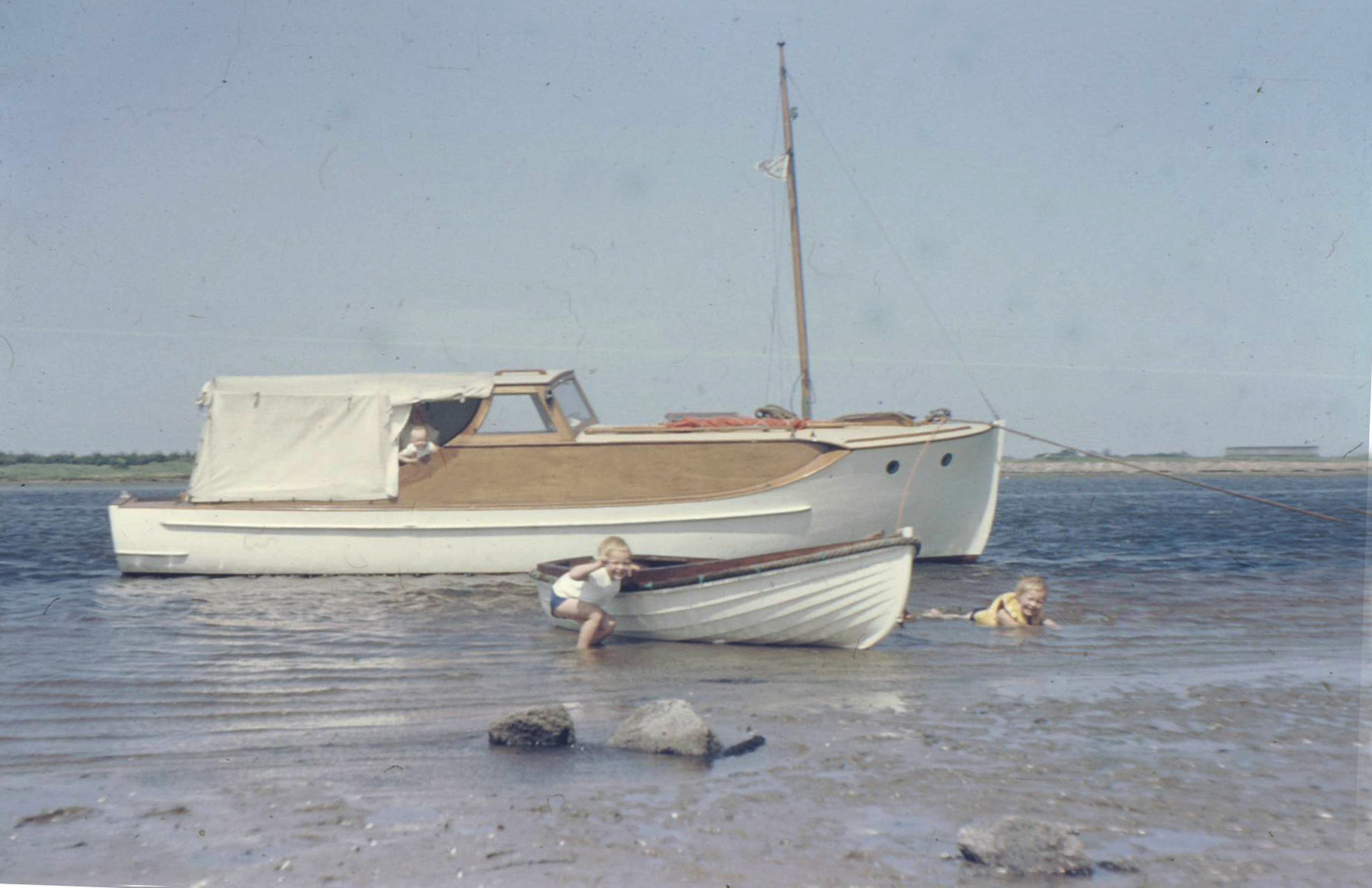 Helt fra jeg var lille, har vi hver sommer sejlet rundt i Limfjorden. Her er vi på Livø i 1963. Jeg står med min gule spand.